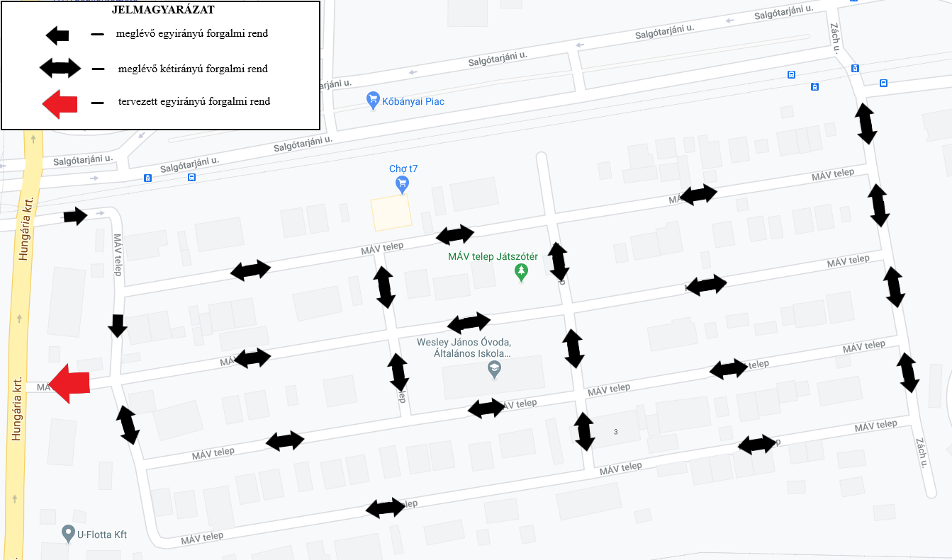 Az elmúlt időszakban sor került a Budapest X. kerület, MÁV-telep forgalomtechnikai felülvizsgálatára, mely során megállapítottuk, hogy a lakótelep útját nagy számban használják az autósok a Hungária körút elkerülése érdekében, menekülőútként használva azt. Az átmenő forgalom csökkentése érdekében ezért az útszakasz egyirányúsítását tervezi a Kőbányai Önkormányzat. A változtatással a MÁV-telep az ott lakók számára továbbra is megközelíthető marad, ugyanakkor menekülési útvonalként ezt követően az érintett szakasz már nem lesz használható.