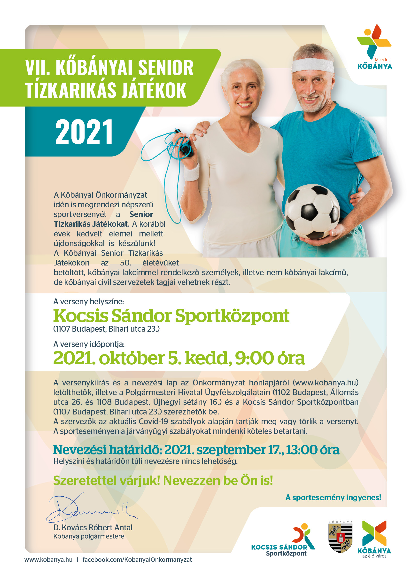 A Kőbányai Önkormányzat idén is megrendezi népszerű sportversenyét a Senior Tízkarikás Játékokat. A korábbi évek kedvelt elemei mellett újdonságokkal is készülünk!