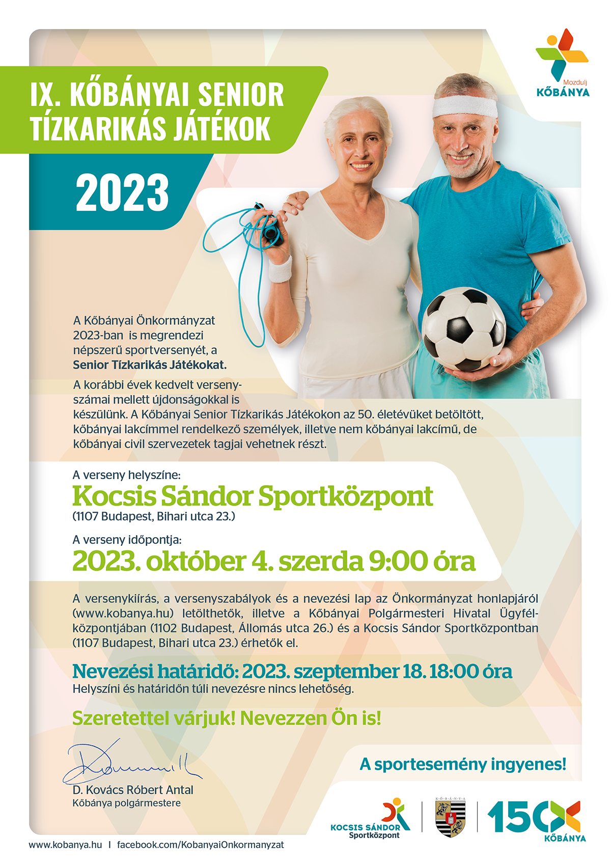 A Kőbányai Önkormányzat 2023-ban is megrendezi népszerű sportversenyét, a Senior Tízkarikás Játékokat.