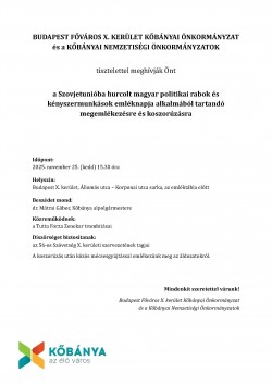 A KŐBÁNYAI NEMZETISÉGI ÖNKORMÁNYZATOK MEGHÍVÓJA A Szovjetunióba hurcolt magyar politikai rabok és kényszermunkások emléknapja alkalmából tartandó megemlékezésre és koszorúzásra