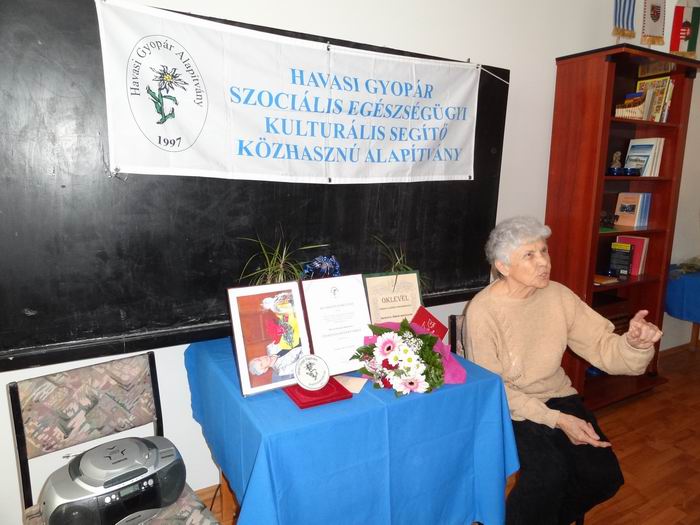 Az „Önkéntességért-díj” elismerésben Benkovich Béláné Éva néni, gyémántdiplomás testnevelő tanár részesült, melyet a Havasi Gyopár Alapítvány elnöke adott át.