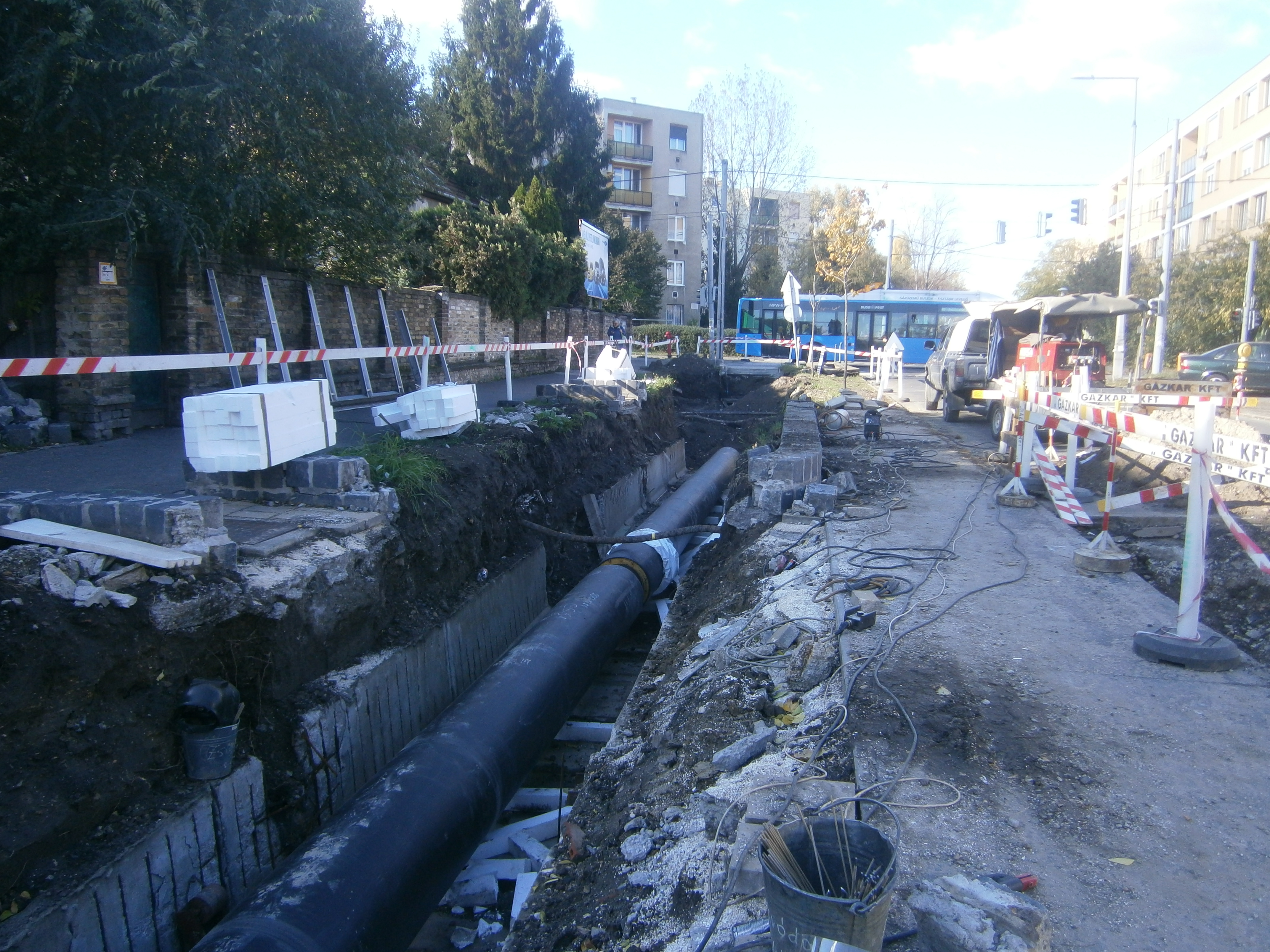 Technikai, műszaki tervezési problémák miatt a kivitelezési munkálatok októberi hónapban lelassultak, ezért a befejezés időpontját kivitelező 2018. január 31-re módosította. A téli munkavégzés feltételei, időjárási körülmények is nehezítik a munka várható befejezésének időpontját. A kivitelező rendelkezik közterülethasználati hozzájárulással. A munkálatok a befejezési stádiumban vannak, először a buszmegálló kerül vissza eredeti állapotában, majd a zöldterület földrendezése következik. A zöldterület rendezése, növényültetés tavasszal folytatódik, véglegesen ekkor zárulnak le a távhőszolgáltatás megújításának munkálatai.