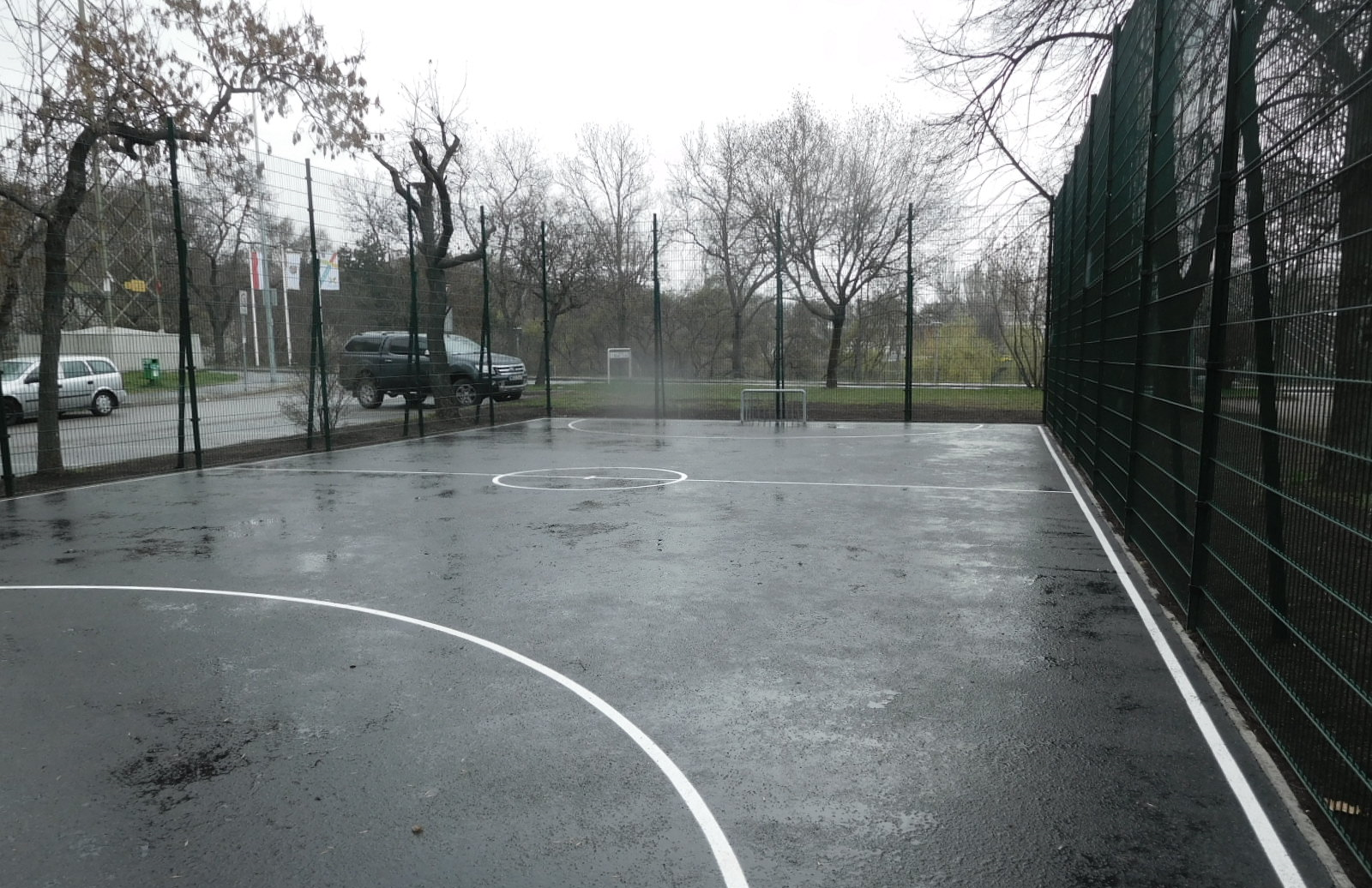 A sportpálya előtti megmaradó aszfaltburkolat alkalmas egy közterületi pingpongasztal elhelyezésére.