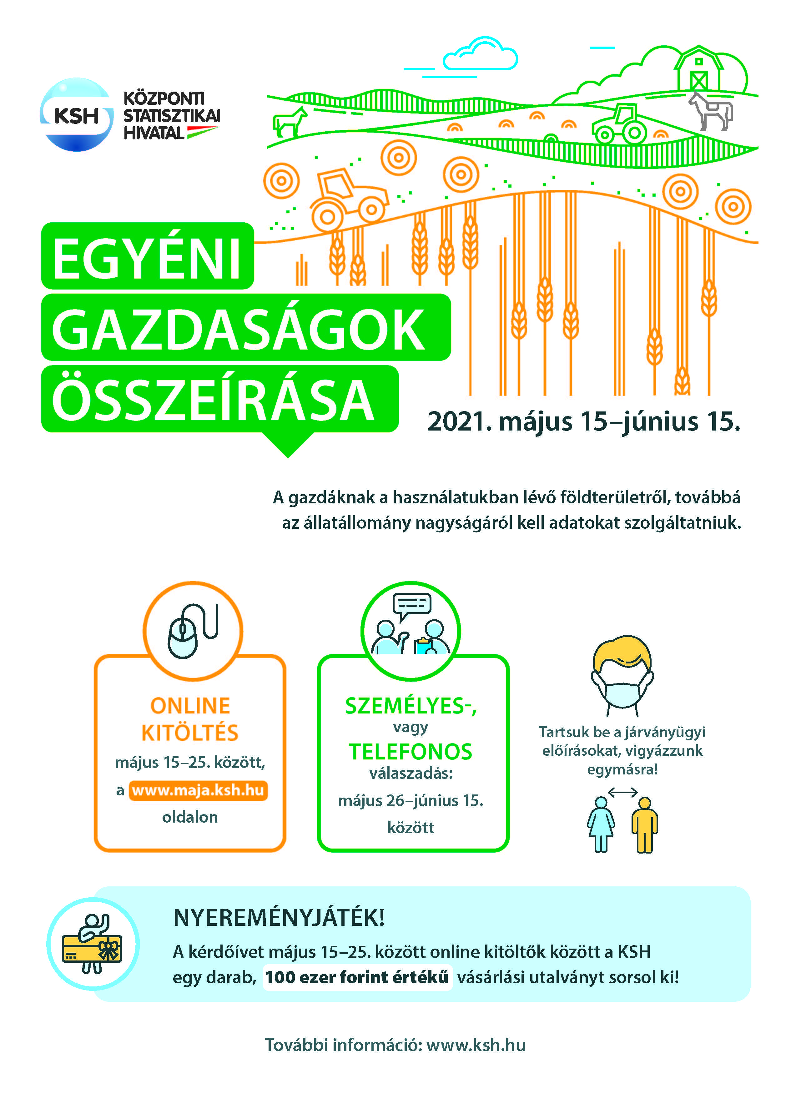 A Központi Statisztikai Hivatal (KSH) az idén országszerte 2021. május 15. és június 15. között hajtja végre aktuális mezőgazdasági összeírását.