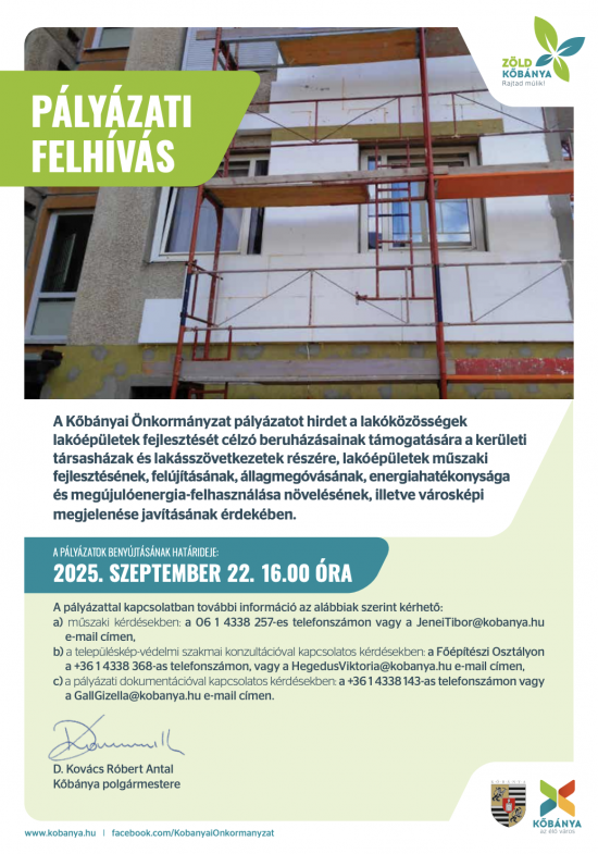 - Pályázat felhívás a lakóközösségek lakóépületek fejlesztését célzó beruházásainak 2025. évi támogatásáról