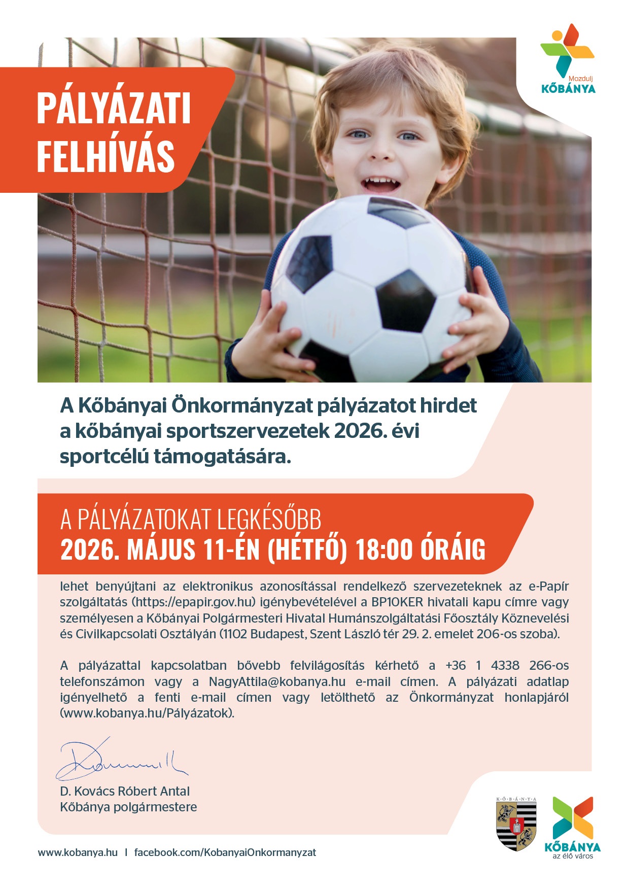 A Kőbányai Önkormányzat pályázatot hirdet a kőbányai sportszervezetek 2026. évi sportcélú támogatására.