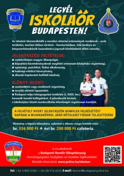 A munkakörrel kapcsolatban a Budapesti Rendőr-főkapitányság ad bővebb tájékoztatást (telefonszám 06 30 176 6525), jelentkezni a karrier.allahirdetes@budapest.police.hu email címen lehet.