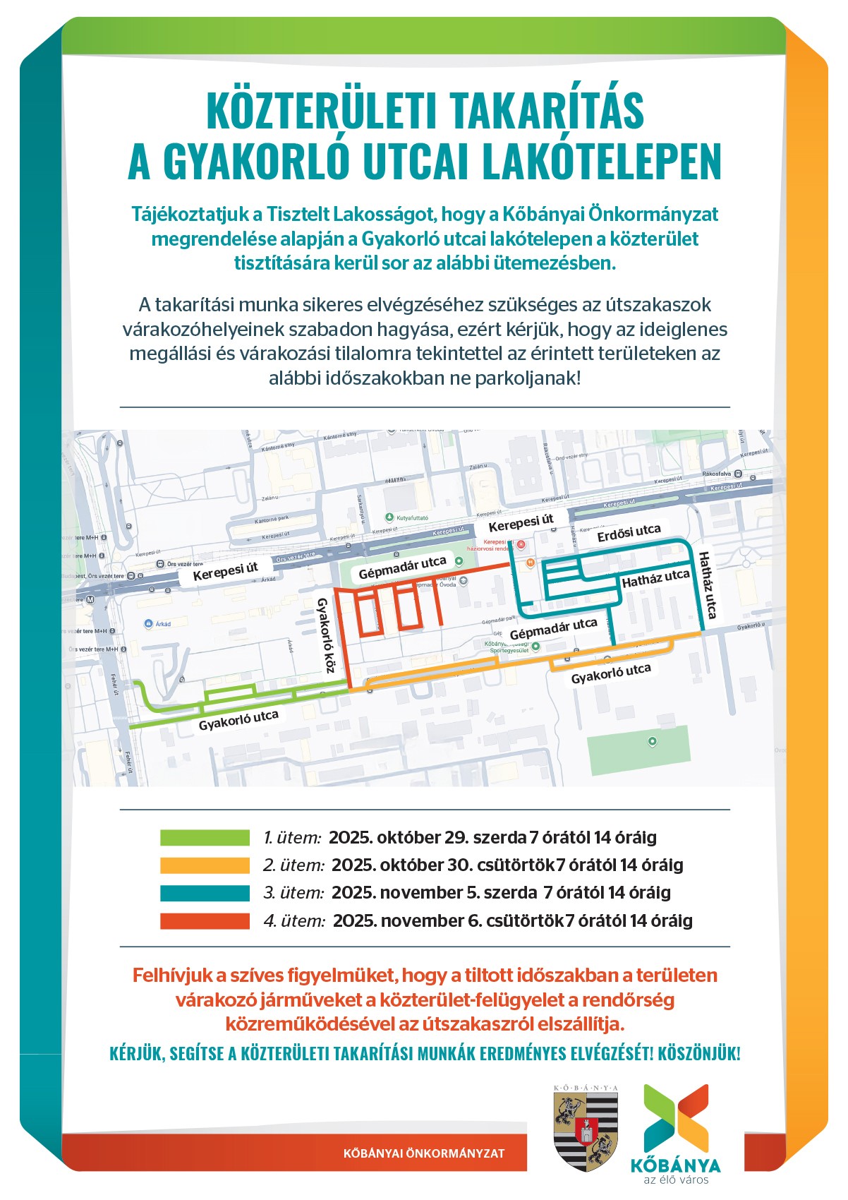 - A Kőbányai Vagyonkezelő Zrt. megbízásából Bácskai Elemér egyéni vállalkozó a Budapest X. kerület, Halom utcai parkoló építési átépítését 2025. szeptember 8-án megkezdi. Várható befejezés: 2025. november 14.
