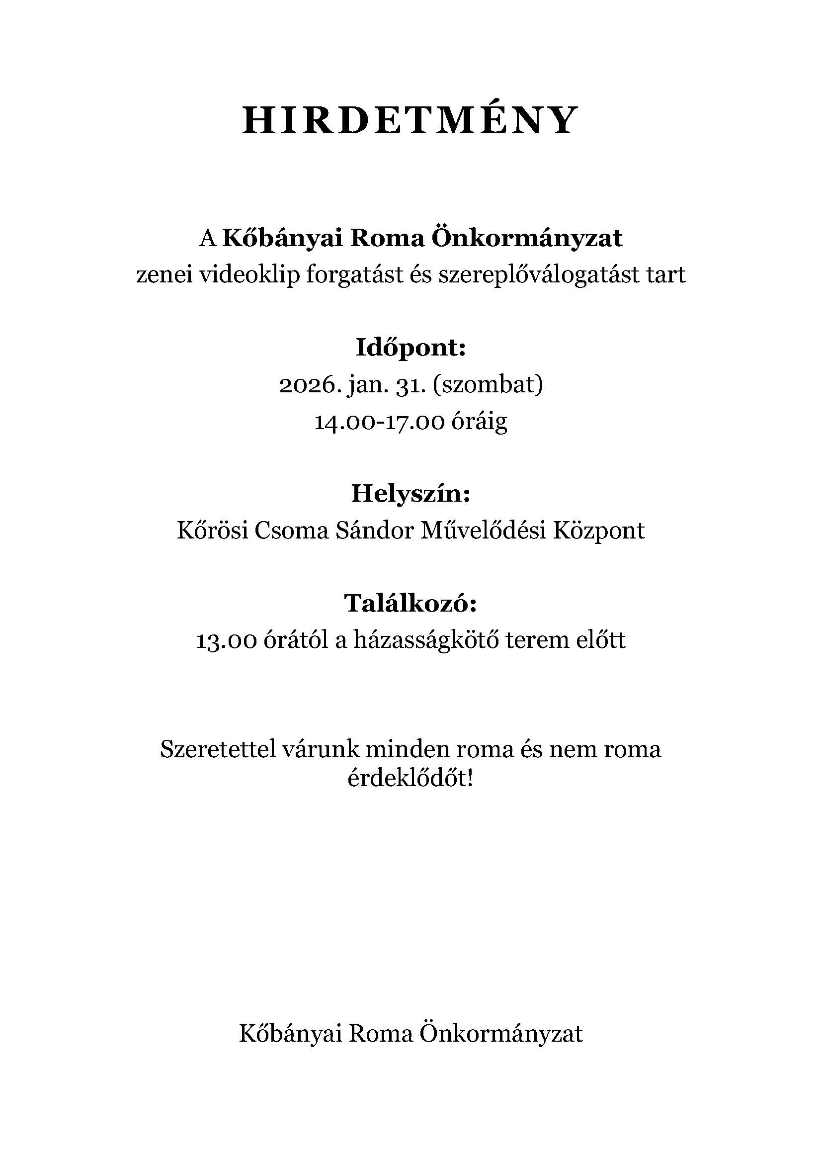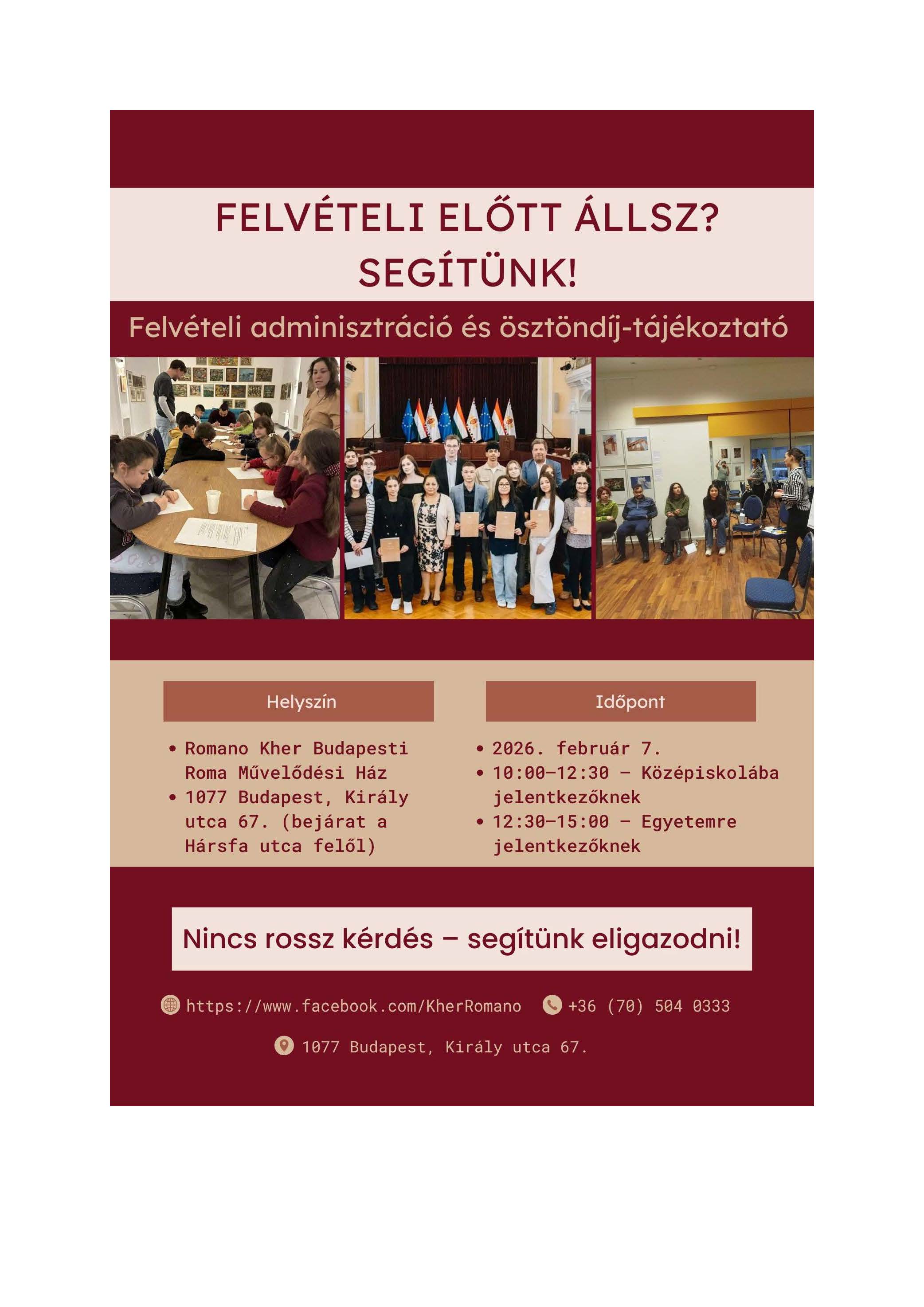 Helyszín: Kőbányai Roma Iroda és Klub (1101 Budapest, Üllői út 120-122. fszt. 57.)Időpont: 2025. december 20. 12.00 és 14.00 óra között.