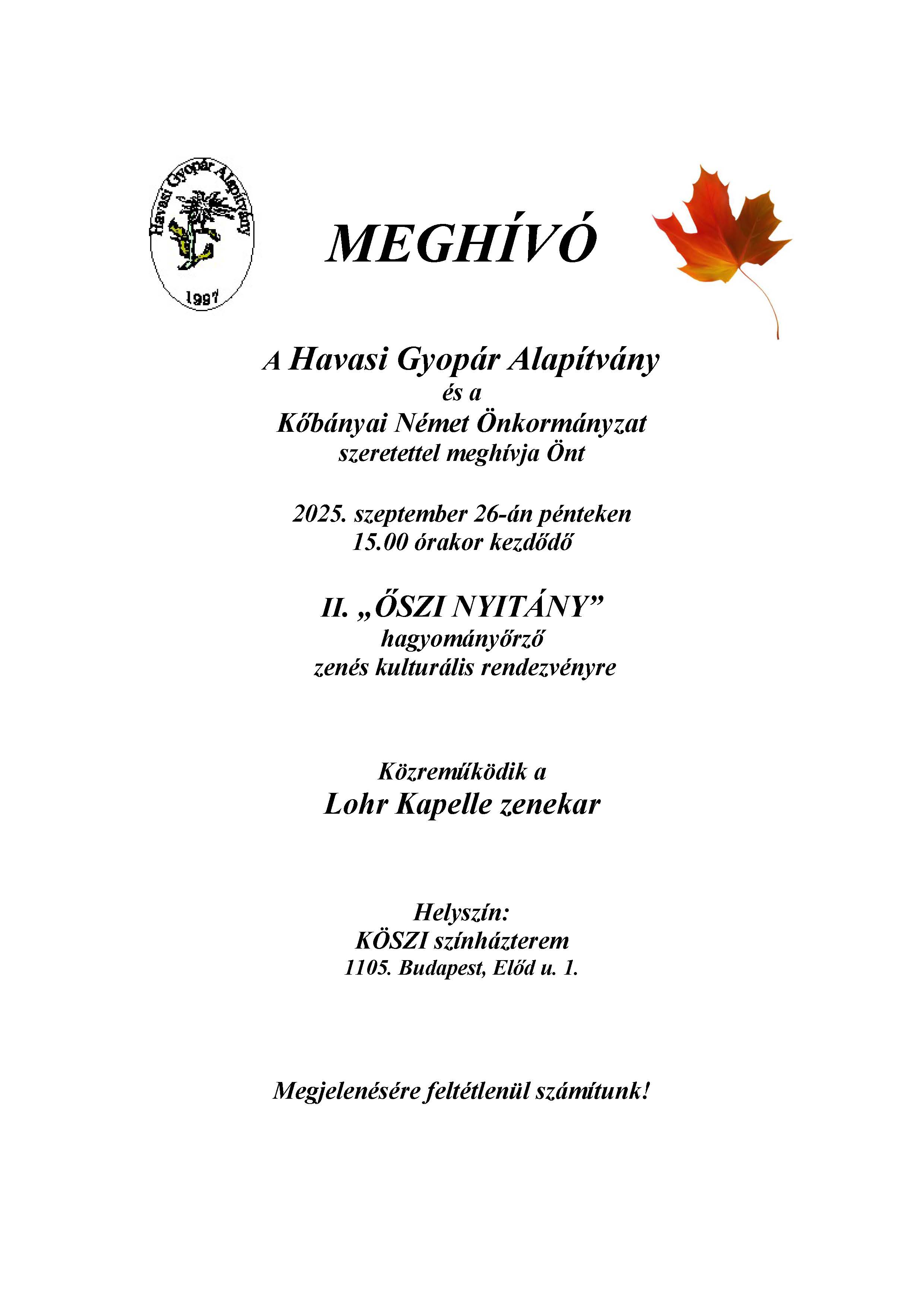 Időpont: 2025. szeptember 26-án pénteken 15.00 órakor