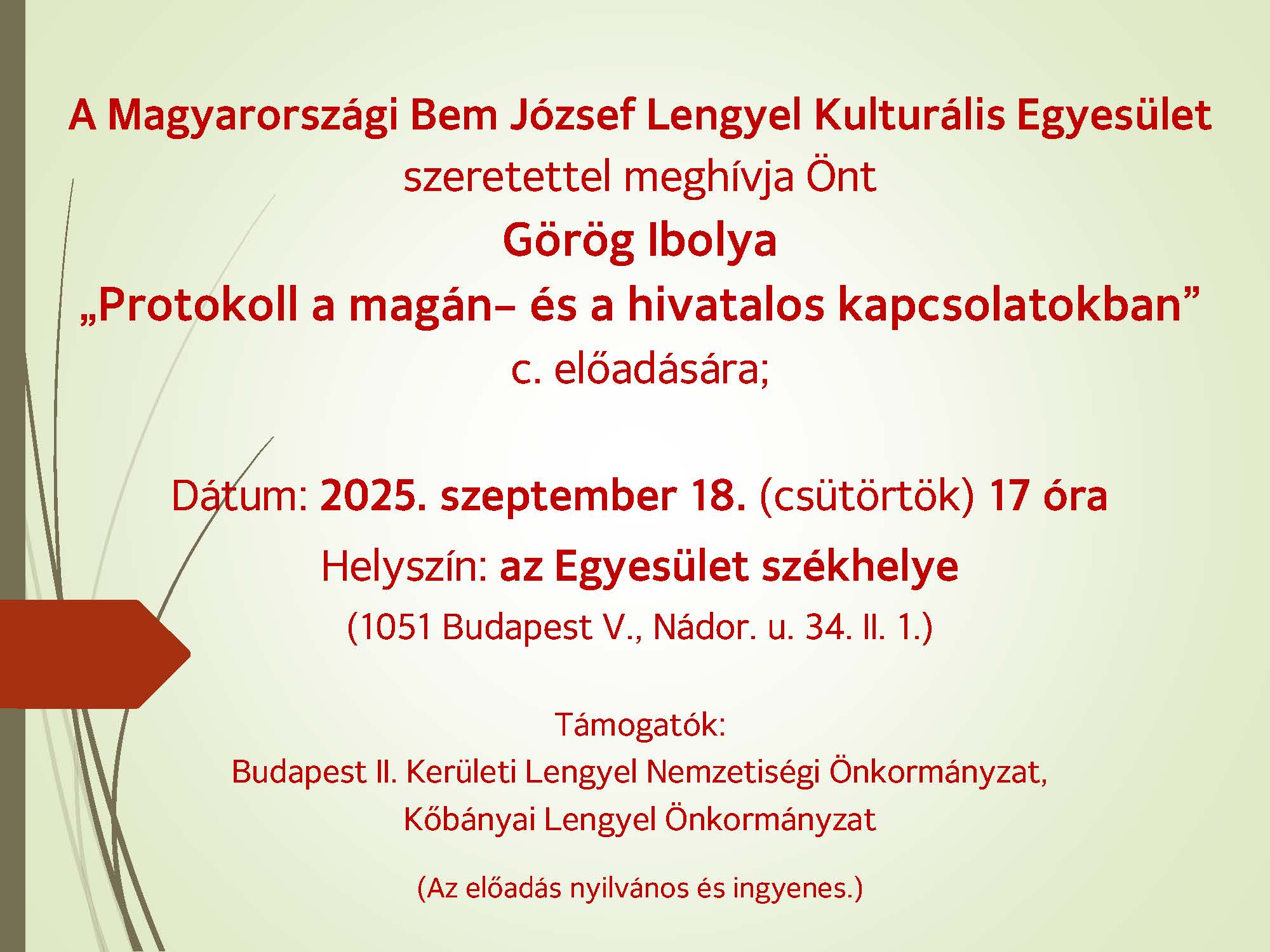 Időpont: 2025. szeptember 18. (csütörtök) 17 óraHelyszín: az Egyesület székhelye (1051 Budapest V., Nádor. u. 34. II. 1.)