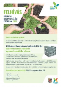 A Kőbányai Önkormányzat pályázatot hirdet 650 literes komposztálókeret ingyenes használatba adására. Jelentkezni a készlet erejéig folyamatosan lehet, az eszközök átvételének feltétele öt éves időtartamú használati megállapodás megkötése.