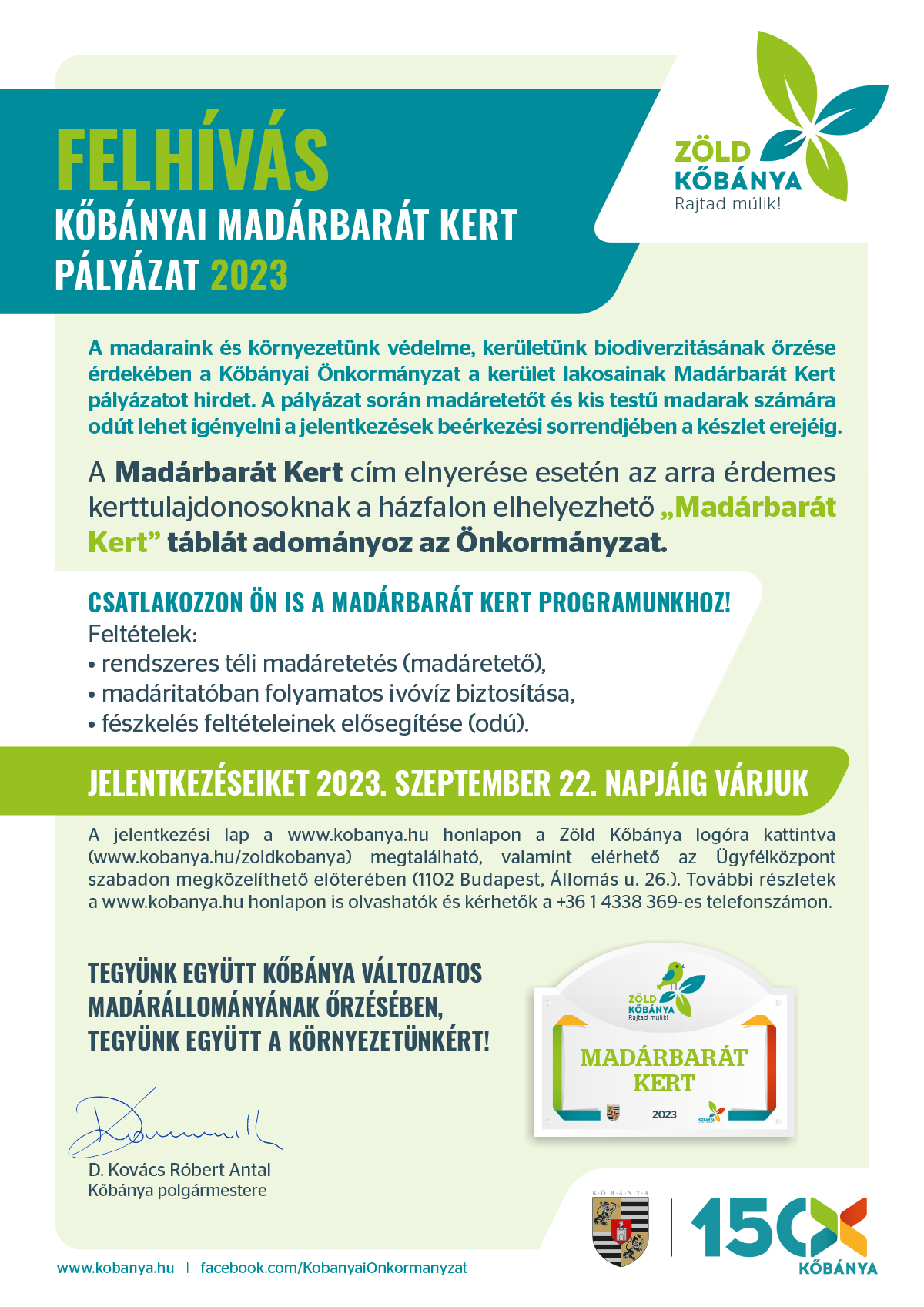 KŐBÁNYAI MADÁRBARÁT KERT PÁLYÁZAT 2023